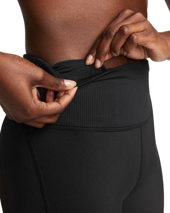 Широкий и плоский пояс оснащен внутренним шнурком для индивидуальной посадки. На поясе располагается два кармана: один – сзади на молнии, для хранения мелочей, второй – потайной, для ключей. Кроме этого предусмотрен вместительный карман на левом бедре, в котором удобно хранить батончики и гели. Светоотражающие элементы повышают безопасность тренировок в темное время суток.