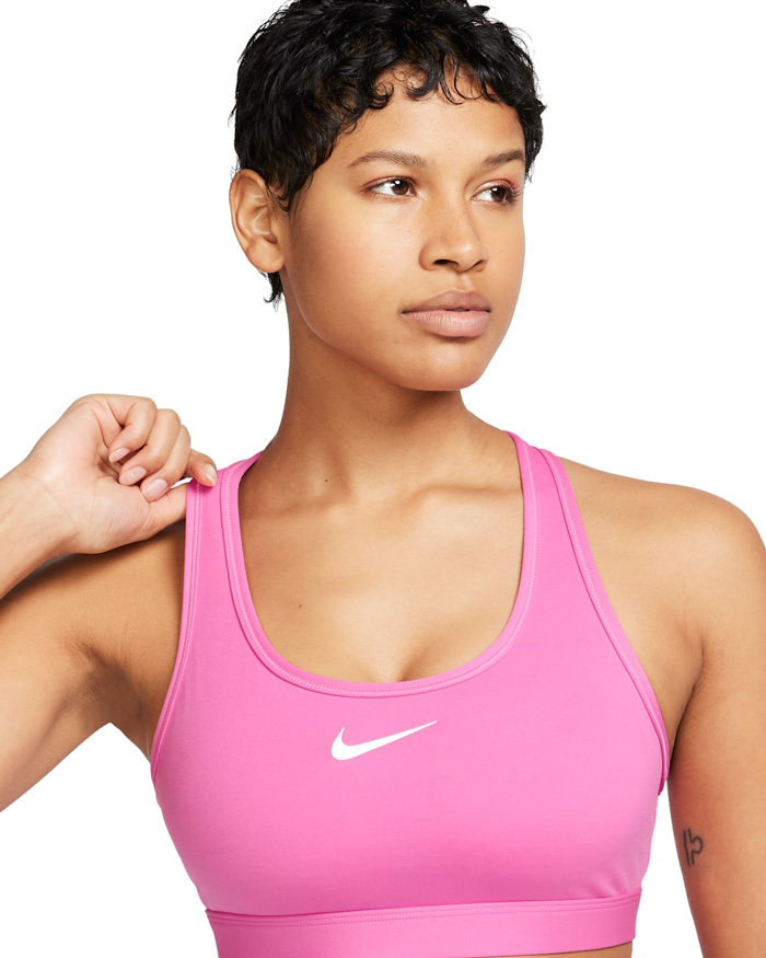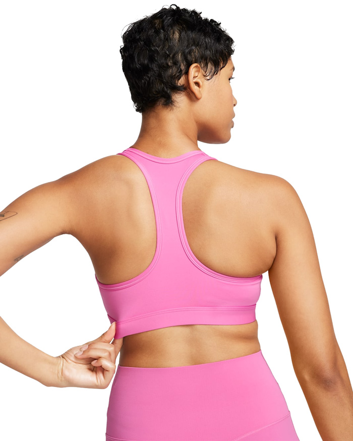Мягкая и эластичная ткань плотно облегает тело, не сковывает движения и позволяет коже дышать благодаря влагоотводящей технологии Dri-FIT. Фиксированные накладки остаются на месте во время выполнения физических упражнений. Широкие лямки и поддерживающая резинка под грудью обеспечивают комфортную посадку и надежную фиксацию.