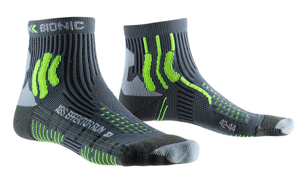 Амортизирующие уплотнения в зоне подъема, пальцев и пятки предотвращают возникновение натертостей и мозолей. Протектор ахиллова сухожилия, благодаря специальной объемной форме, эффективно защищает от давления, трения и ударов. Крестообразный бандаж поддерживает сухожилия голеностопа и фиксирует мышцы и суставы, не сковывая при этом движений. Трехканальная система вентиляции великолепно отводит влагу, обеспечивая приток свежего воздуха в те зоны подошвы, которые плотно прижаты к обуви.