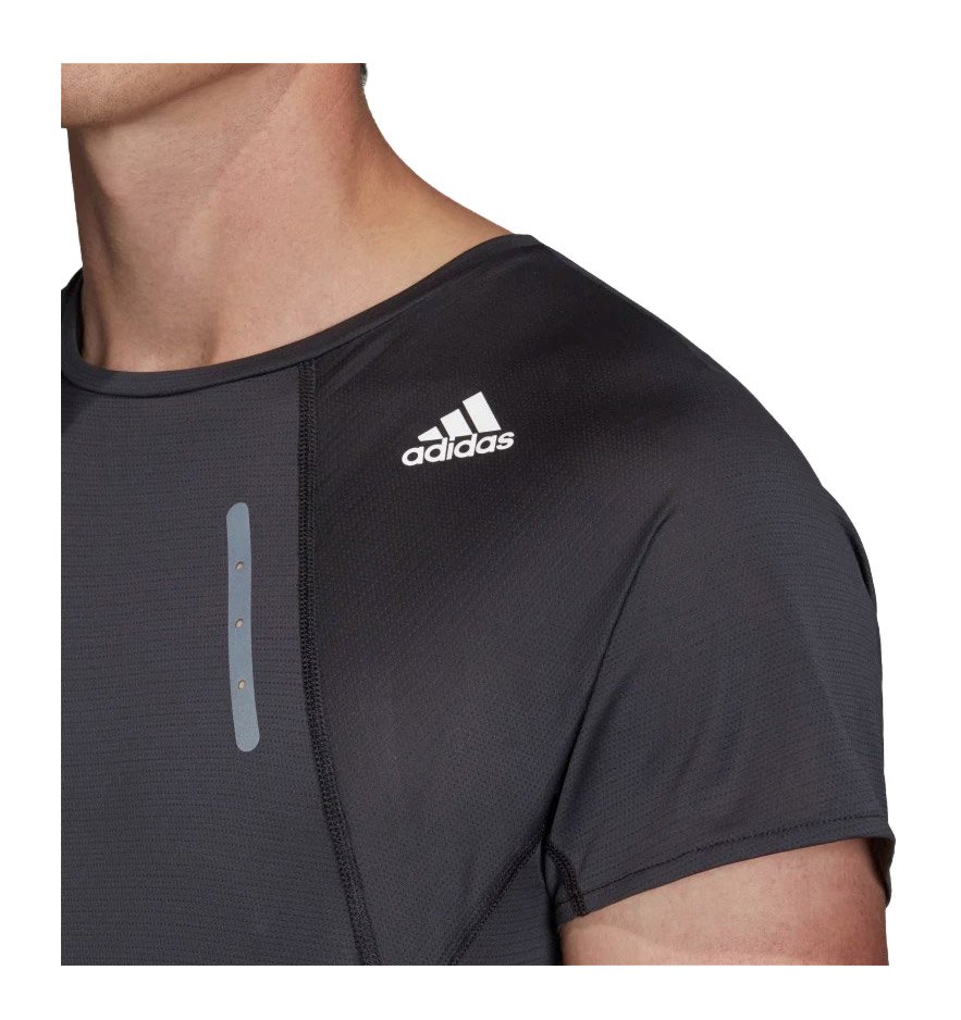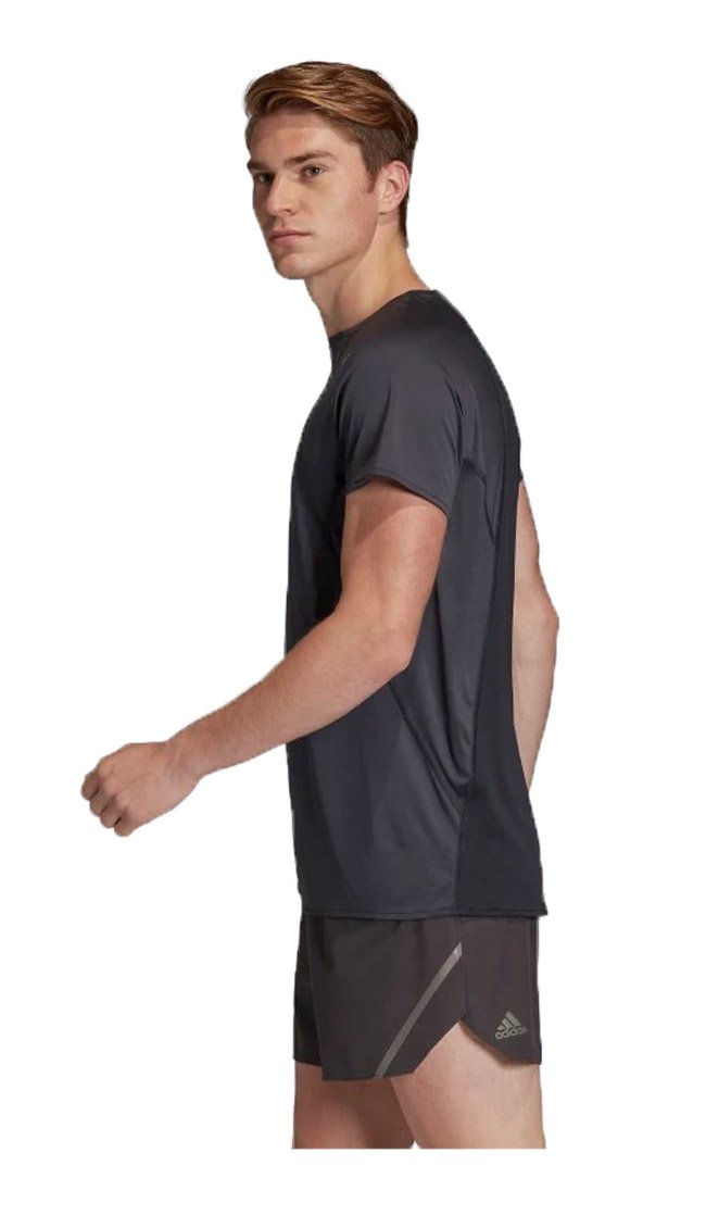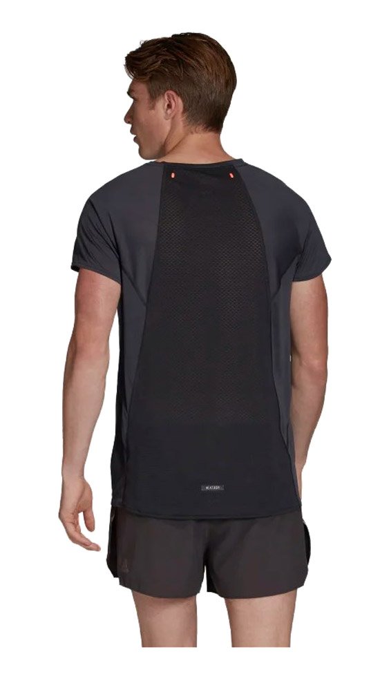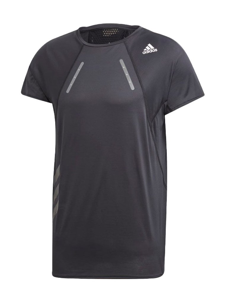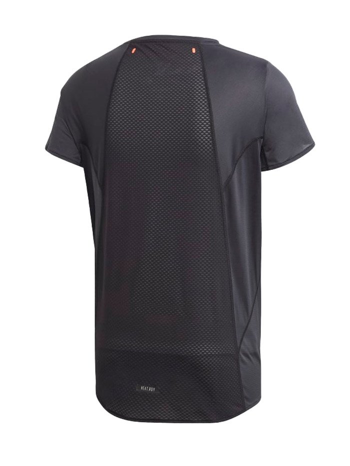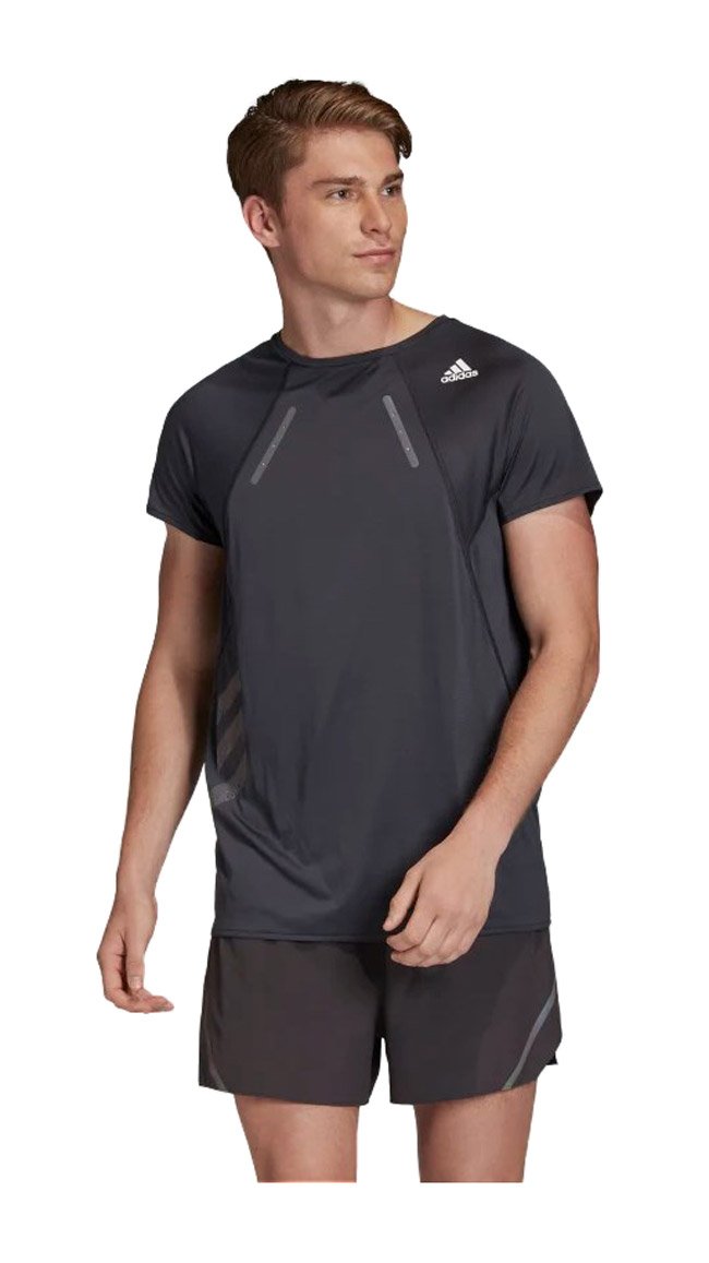 Мужская футболка классического кроя с круглым воротом, предназначена для бега в жаркую погоду. Модель изготовлена из тонкой быстросохнущей ткани HEAT.RDY, дарящей прохладу на дистанции.