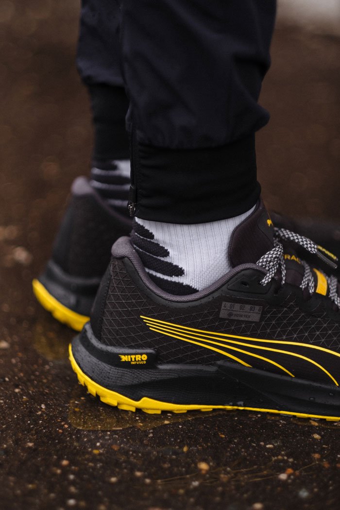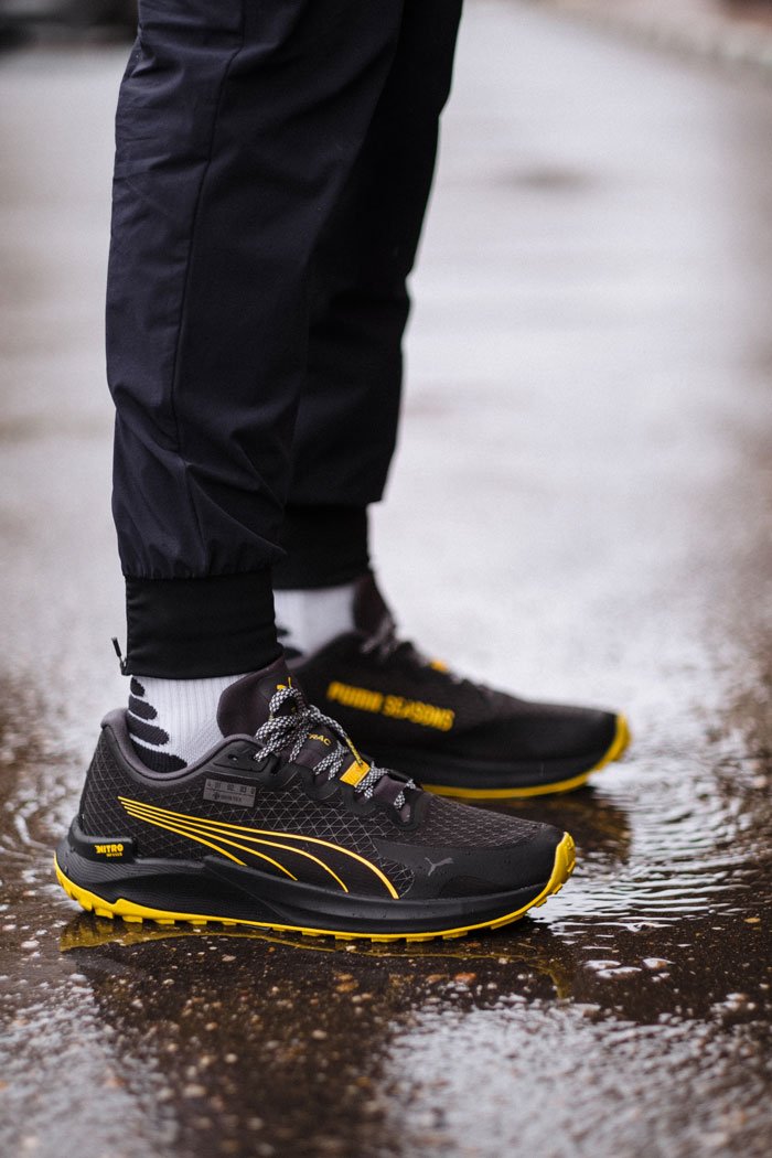 Полноразмерная межподошва NitroFoam™ обеспечивает превосходную отзывчивость и амортизацию в легком корпусе. Подошва из прочной резиновой смеси PumaGrip ATR обеспечивает надежное сцепление на пересеченной местности, а также в ненастную погоду. Наличие светоотражающих деталей повышает безопасность тренировок в темное время суток.