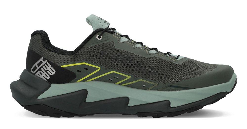 Верх выполнен из прочной эластичной сетки, которая обеспечивает плотную посадку и воздухообмен. Область вокруг пятки и боковые части кроссовка усилены прочными накладками из TPU, а мысок защищен от ударов о камни.