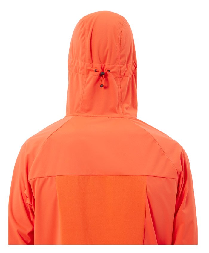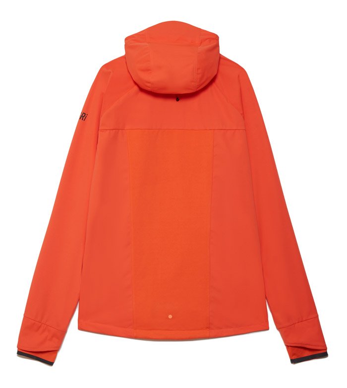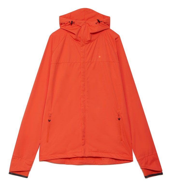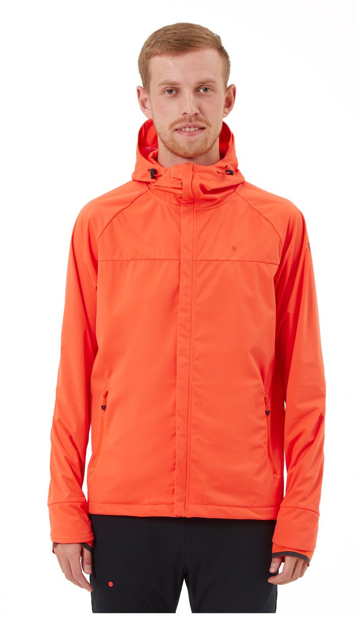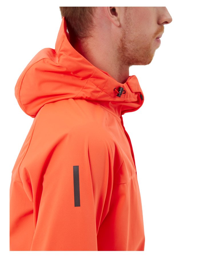 Регулируемый капюшон защищает от ветра. По бокам карманы на молнии для хранения мелочей. Манжеты-перчатки с микрофлисом на внутренней стороне защищают руки от холода. Светоотражающие элементы повышают видимость в темное время суток.