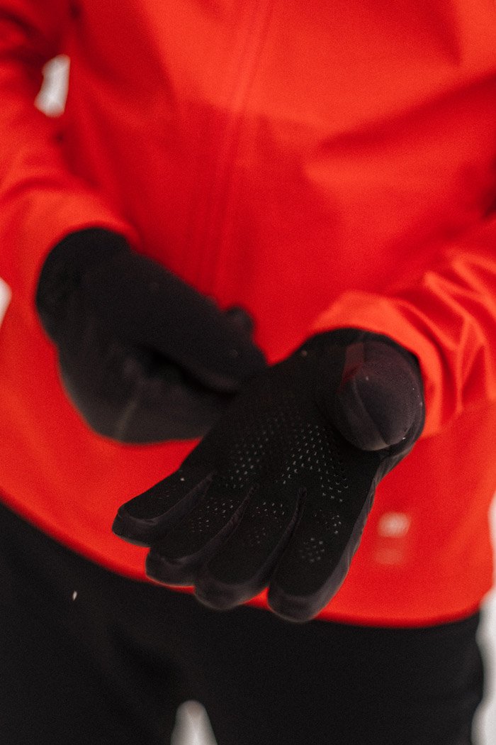 Теплые зимние перчатки для тренировок в холодную морозную погоду. Для защиты от ветра внешняя ткань выполнена из ветрозащитной мембраны, а внутри располагается утеплитель из мягкого легкого флиса. Ладонь изготовлена из износоустойчивой ткани, на поверхность которой нанесен силиконовый принт для хорошего сцепления. Перчатки оснащены карабинами для удобного хранения в паре. На внешнюю сторону нанесены светоотражающие элементы, повышающие безопасность тренировок в темное время суток.