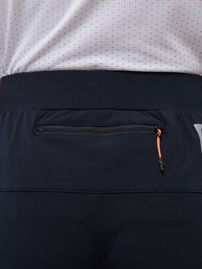 В боковых карманах на молниях удобно хранить необходимые на пробежке мелочи, задний карман предназначен для хранения телефона. Эластичный пояс дополнительно регулируется при помощи шнурка.