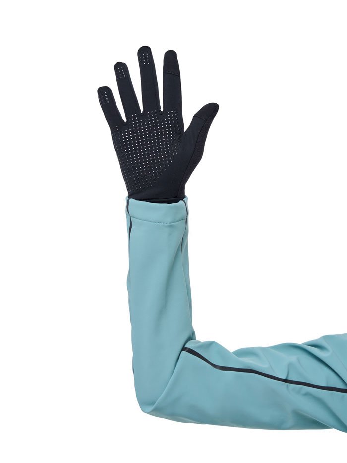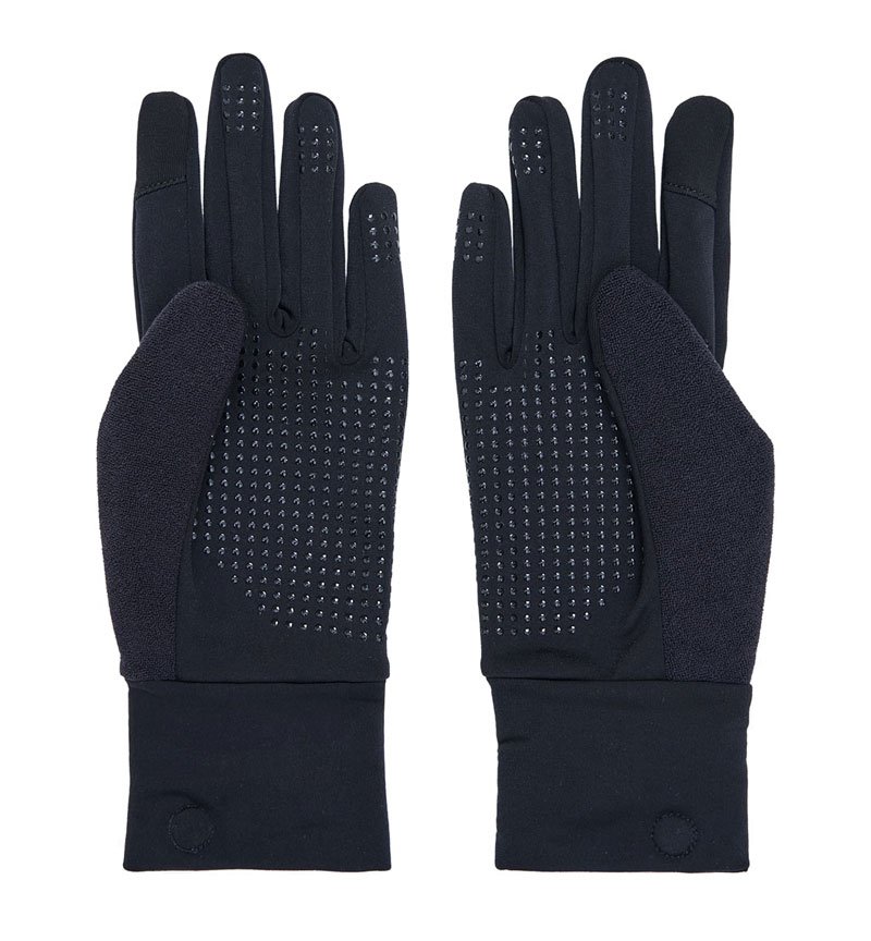 Базовые перчатки для бега и других тренировок на улице в межсезонье сшиты из эластичного трикотажа с начесом, на больших пальцах располагаются вставки из мягкой впитывающей ткани, чтобы вытирать пот. На ладони и пальцы нанесен силиконовый принт для хорошего сцепления. Светоотражающие элементы повышают видимость в темное время суток.