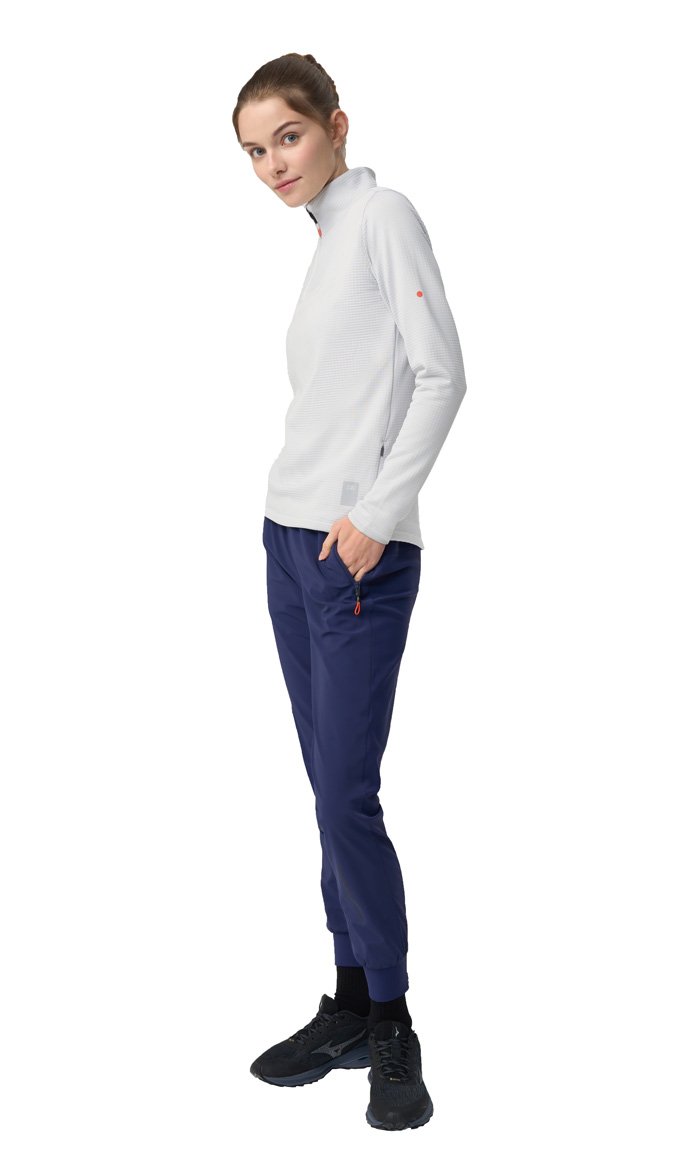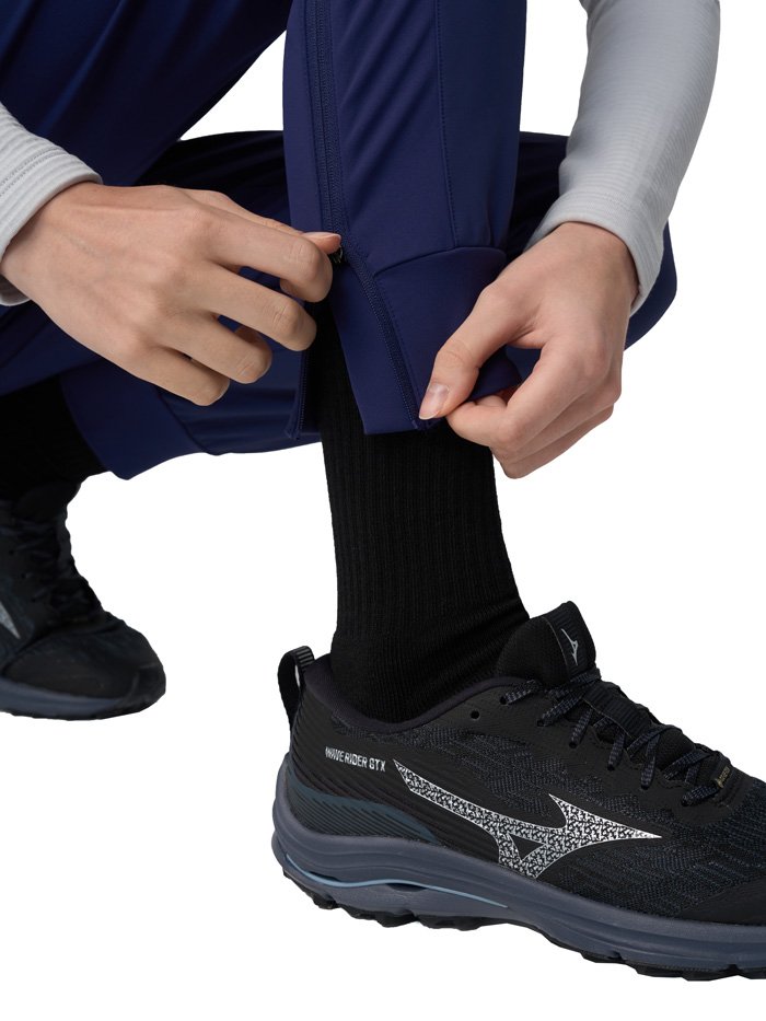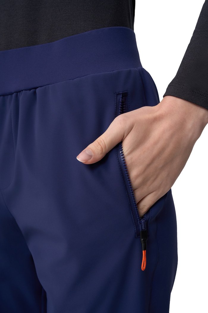 Брюки оснащены продуманной системой карманов на молнии, что позволяет удобно хранить необходимые мелочи. Эластичный пояс и манжеты с молниями внизу штанин обеспечивают плотное прилегание и защиту от ветра.