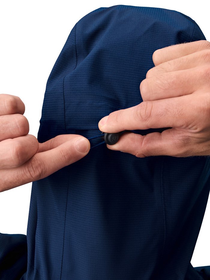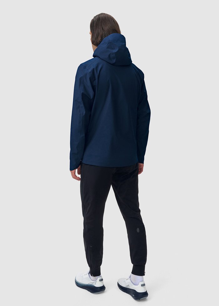 Куртка оснащена водонепроницаемыми молниями и клееными швами, которые исключают промокание даже в сложных погодных условиях. Продуманная конструкция включает боковые карманы, регулируемый нижний край и капюшон с настройкой по бокам и на затылке, что позволяет адаптировать посадку под любые условия и сохранять комфорт во время движения. Светоотражающие элементы спереди и сзади делают тренировки безопаснее в тёмное время суток.