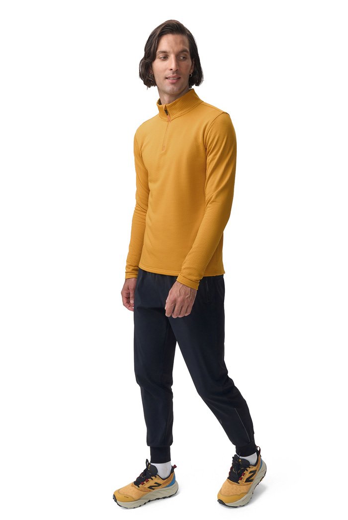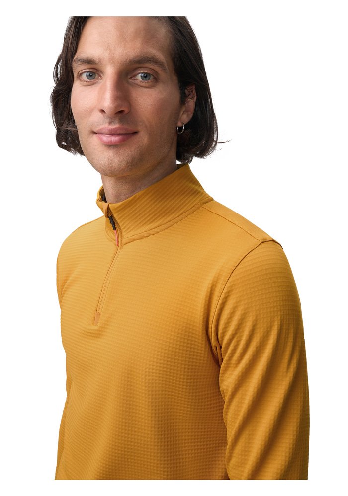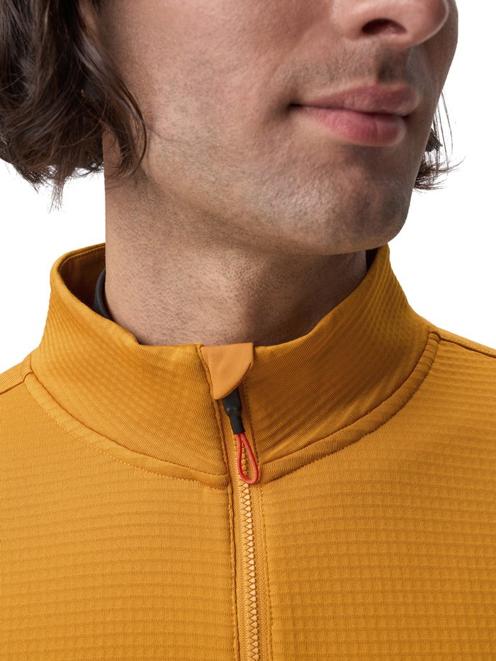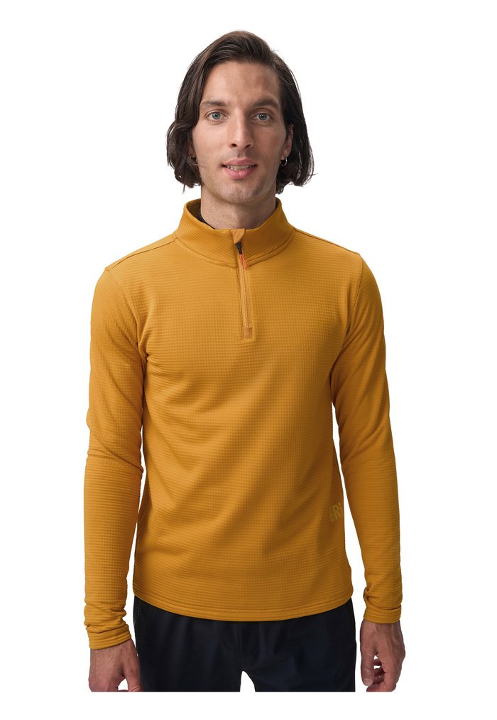 Базовая кофта с высоким воротом на молнии. В зависимости от погоды ее можно носить как самостоятельный слой, надевать под куртку или жилет. Подойдет для зимних пробежек при температуре от –5 до –15°С. Лонгслив сшит из дышащей "вафельной" ткани с влагоотводящей пропиткой QuickDry®. Имеется потайной боковой карман.