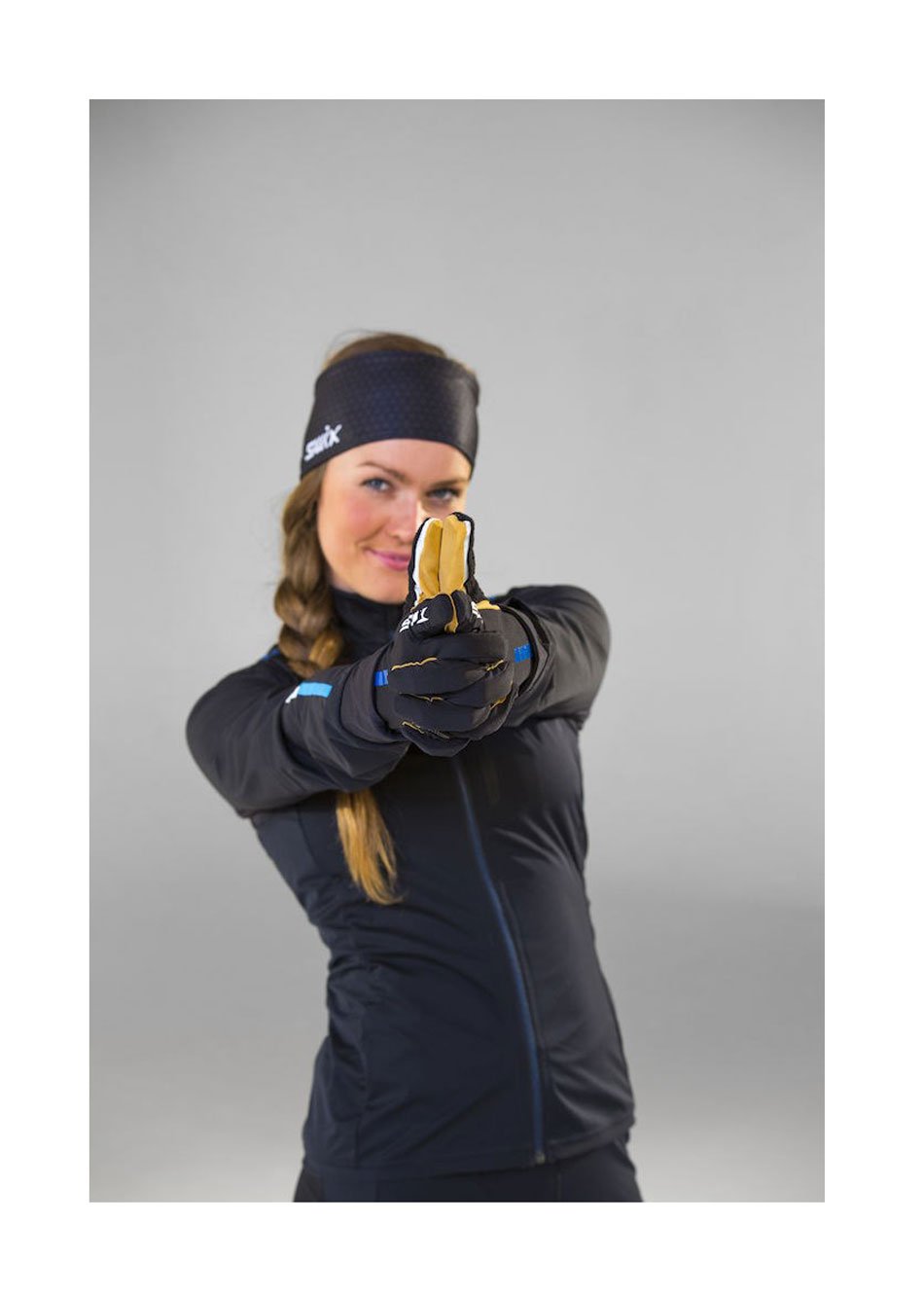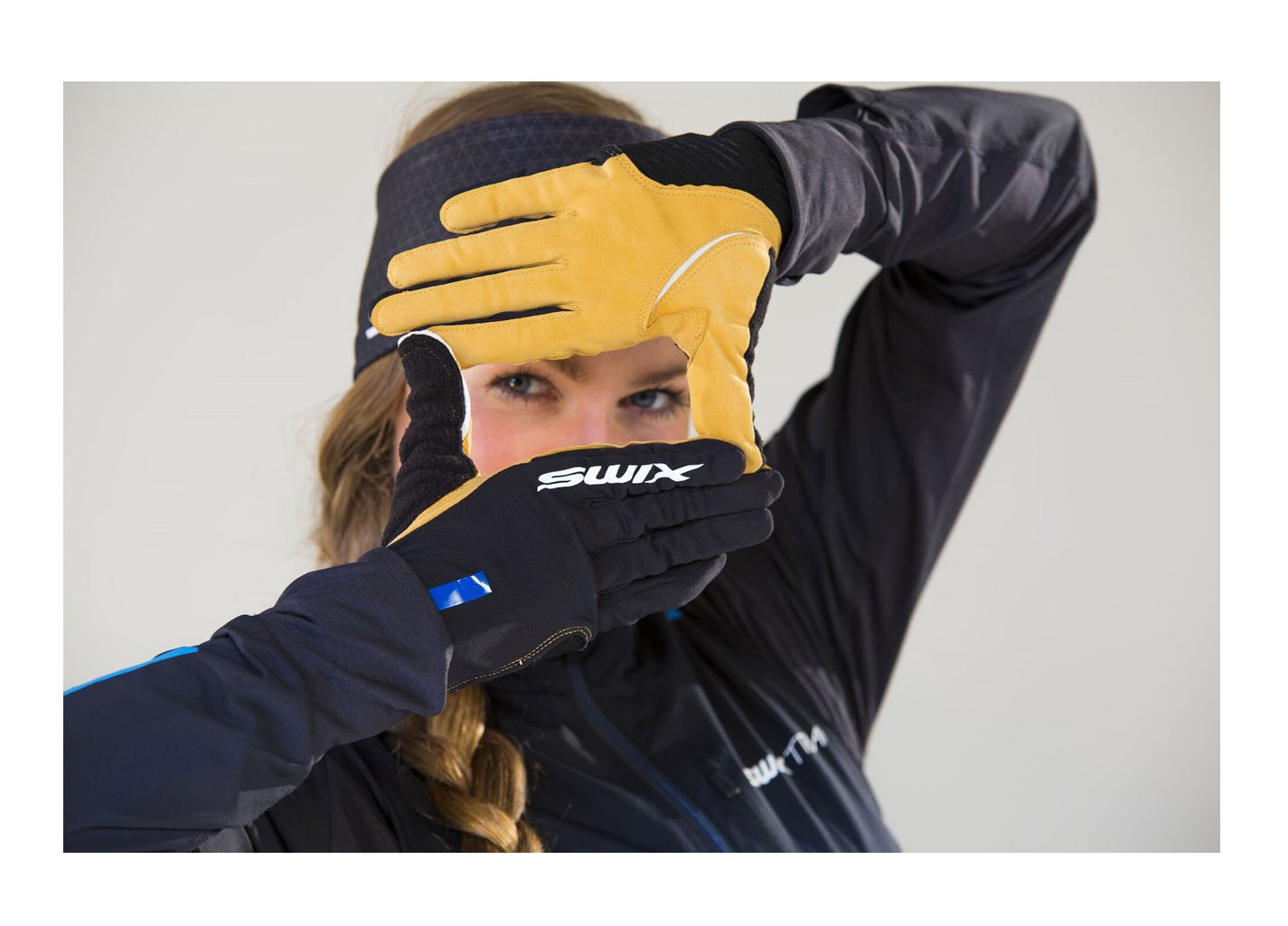 Перчатки хорошо сохраняют тепло благодаря использованию двухстороннего флиса. Дизайн манжеты совместим с системой поддержки запястий SWIX SPPS, увеличивающей эффективность передачи усилий на палки. Силиконовое нанесение с внешней стороны, удерживает рукава куртки на месте. Ладонь изготовлена из высококачественной замшевой микрофибры толщиной 0,6 мм.