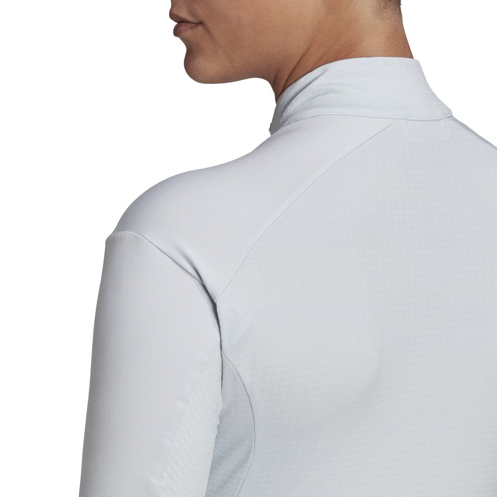 В состав этой кофты входит материал Primegreen из переработанных волокон. Благодаря технологии AeroReady ткань быстро отводит излишки влаги, сохраняя кожу сухой. Облегающий крой, адаптированный под особенности женской анатомии, добавляет комфорта, а потайная молния до середины груди помогает регулировать уровень вентиляции.