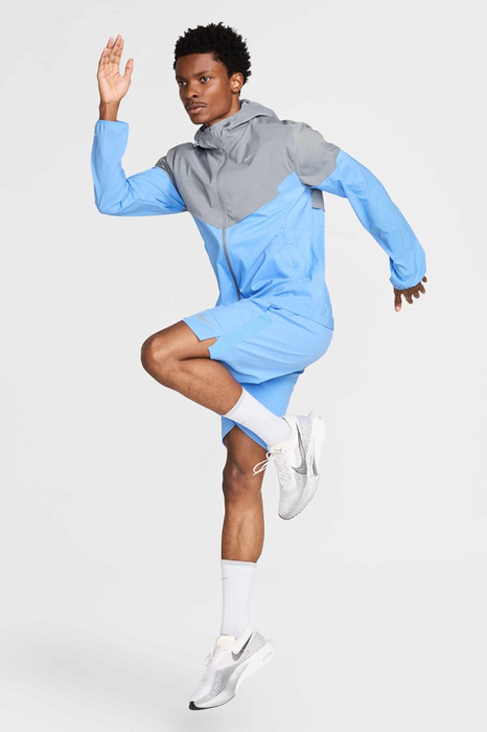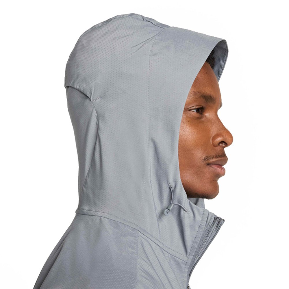 Ветронепроницаемый материал защищает от порывов ветра и влажного тумана, не утяжеляя. Регулируемый капюшон, высокий ворот и эластичные манжеты обеспечивают дополнительную защиту при плохой погоде. Вентиляционные вставки и дышащая конструкция помогают избежать перегрева. Модель компактно складывается в собственный карман, что делает куртку удобной для переноски. Светоотражающие элементы повышают видимость в условиях недостаточного освещения.
