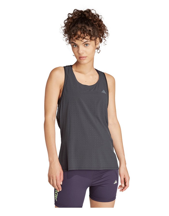 Легкая майка с минималистичным и стильным дизайном для тренировок в жаркую погоду или занятий в помещении. Светоотражающий логотип на правой стороне гарантирует безопасность на пробежках в темное время суток. Благодаря вырезу в области лопаток в сочетании с лазерной перфорацией, вы будете чувствовать себя очень комфортно даже на интенсивных тренировках в условиях жаркой погоды. Материал Aeroready очень приятно прилегает к телу и быстро отводит влагу.