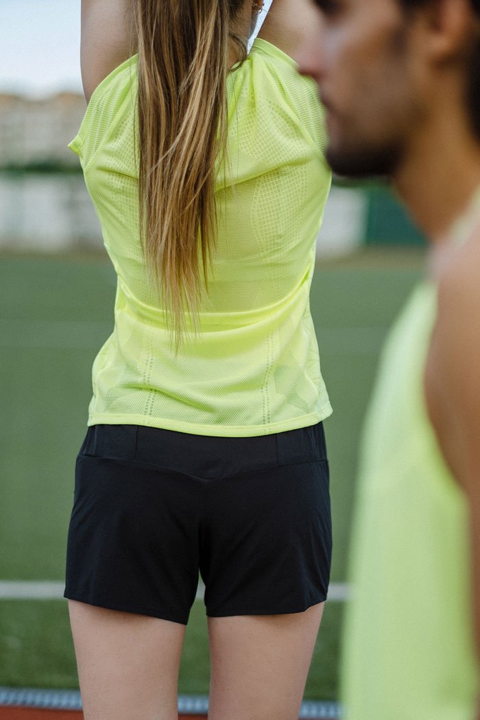 Женские шорты с внутренним слоем из дышащей ткани. Внешние шорты изготовлены из легкой эластичной ткани, которая хорошо отводит влагу и обладает охлаждающим эффектом.