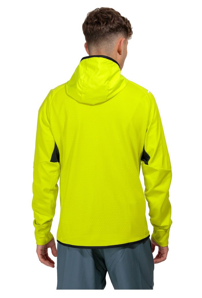 Гибридная кофта из мягкой ткани Warmalite с начесом с внутренней стороны и ветрозащитными вставками. Модель оборудована капюшоном для защиты от ветра и небольшого дождя.