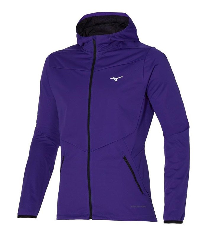 Функциональная куртка предназначена для бега в холодную погоду, так как оснащена фирменной технологией Mizuno BreathThermo, которая способна трансформировать влагу в дополнительное тепло: вместо того, чтобы мгновенно охлаждаться, водяной пар задерживается в ткани и образует между телом и одеждой согревающую прослойку.