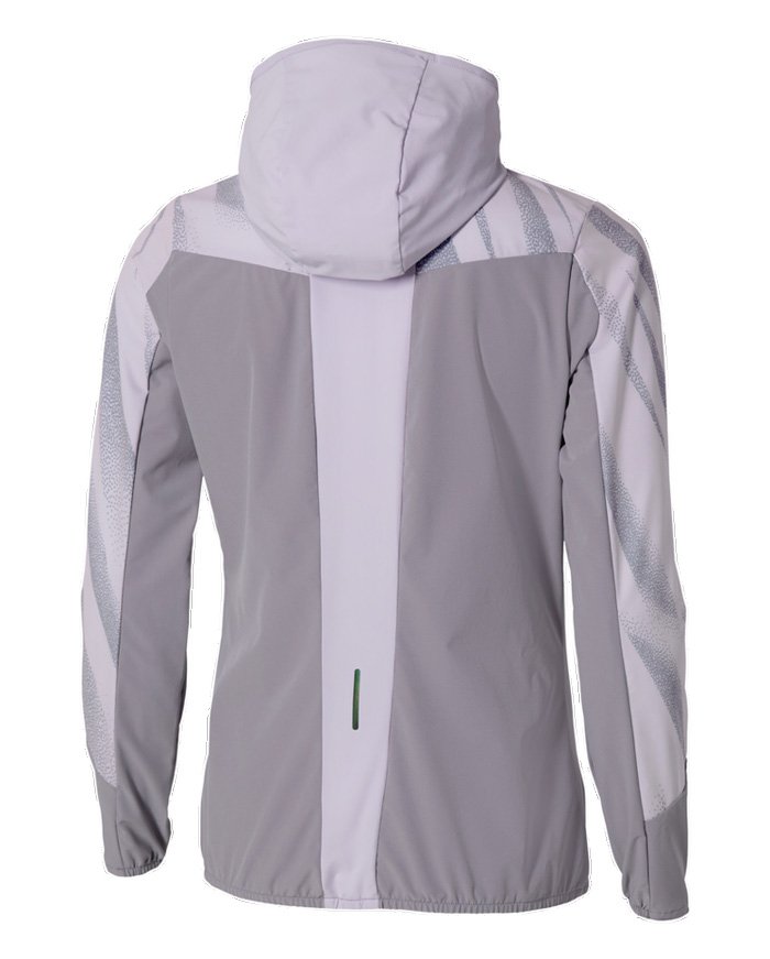 Легкая эластичная ткань обеспечивает эффективное сохранение тепла без перегрева, помогая поддерживать комфортную температуру тела во время движения. Материал куртки хорошо дышит и быстро отводит излишки влаги, что особенно важно при переменной интенсивности нагрузок. Эргономичный крой не сковывает движений. Капюшон защищает от ветра и прохлады.