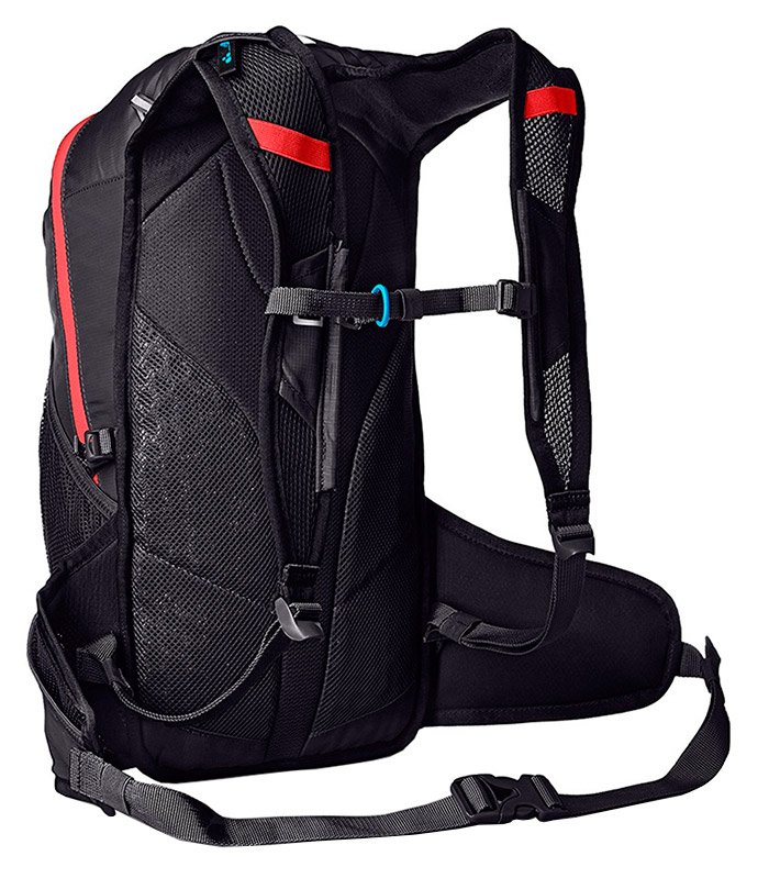 В основном отделении рюкзака, сшитом из непромокаемого материала 210D Nylon Fancy RipStop, имеется отсек для гидратора и кармашек для мелких предметов. Особая конструкция плечевых лямок, спинка Airvent Agility, система подгонки поясного ремня и компрессионные ремешки делают бег с рюкзаком вполне комфортным. А светоотражающие элементы делают бег в тёмное время суток безопа