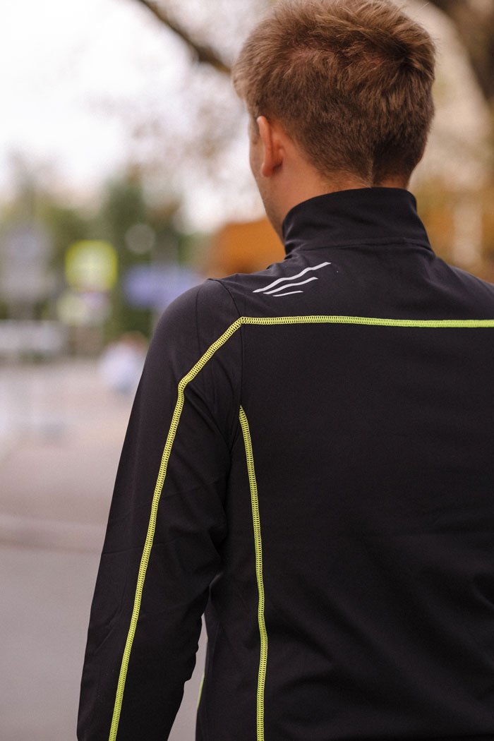 Плоские швы не натирают и не раздражают кожу. Молния до середины груди позволяет регулировать вентиляцию, а высокий воротник защищает шею от холода и ветра. Светоотражающие элементы повышают видимость в темное время суток.