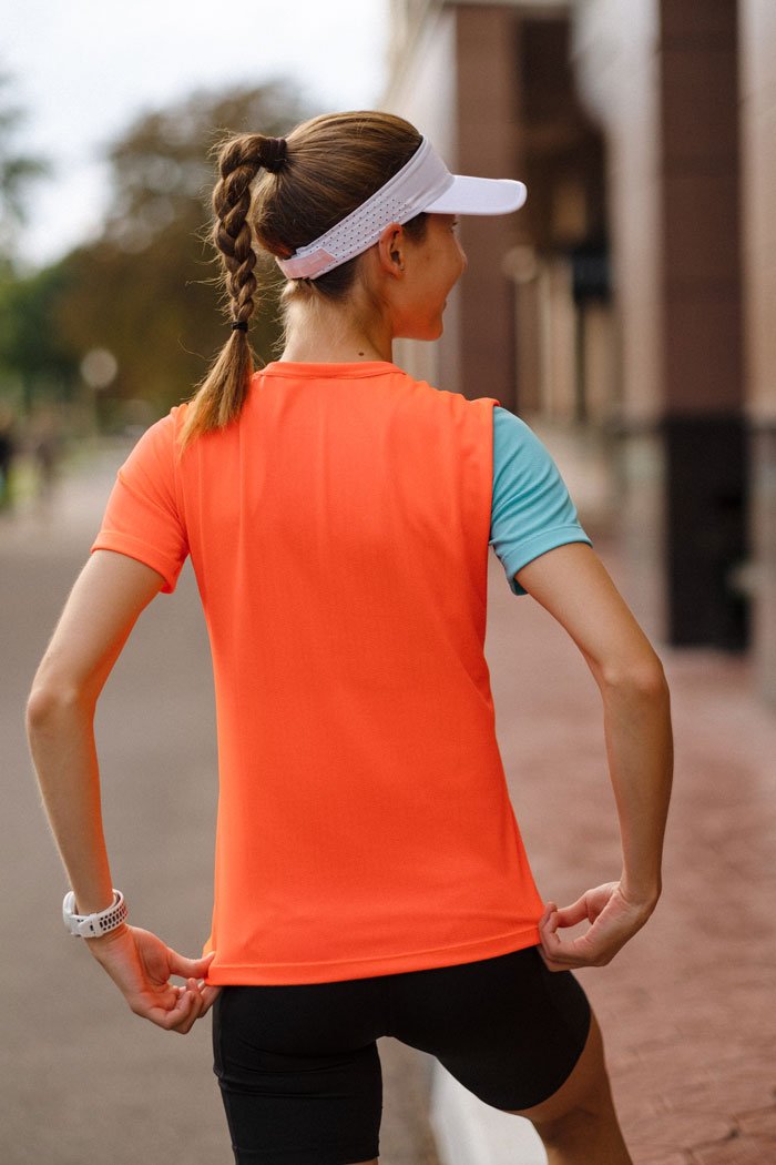 Легкая футболка из тонкой струящейся ткани с оригинальным принтом на лицевой стороне. Модель сшита из технологичного быстросохнущего трикотажа, состоящего из двух полиэфирных волокон. За счет того, что волокна различаются по весу, происходит интенсивный переход влаги из внутреннего волокна во внешнее, а далее - испарение и высыхание ткани.