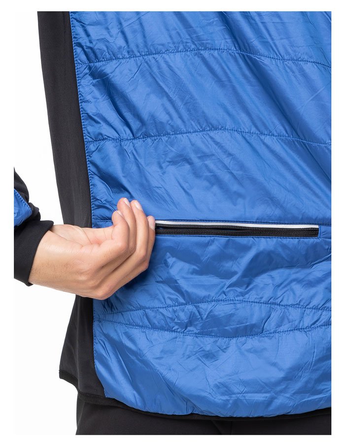 Высокий воротник и трикотажные манжеты защищают от холода и ветра. В боковых карманах удобно хранить перчатки, спортивное питание и другие полезные мелочи, также расположен вместительный карман для хранения аксессуаров на спине. Светоотражающие элементы повышают видимость спортсмена во время пробежек в темное время суток.