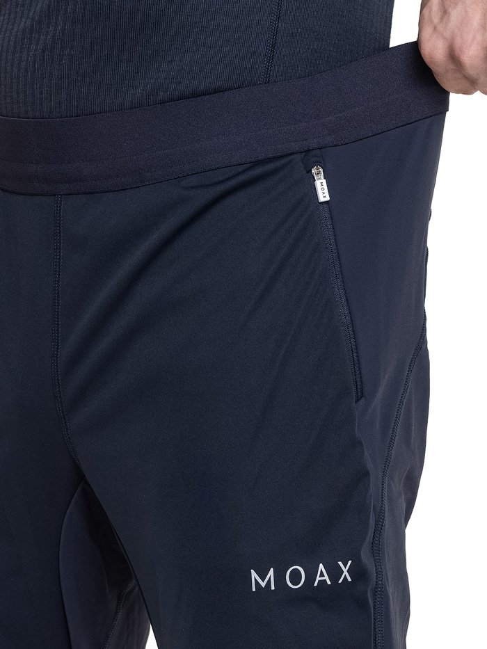 С передней стороны располагается дышащая ветрозащитная мембрана, которая эффективно защищает от холодного ветра, сохраняя тепло и комфорт в сложных погодных условиях. Регулируемый пояс позволяет настроить посадку под индивидуальные предпочтения для максимального комфорта. Молнии внизу штанин облегчают надевание и снятие штанов, особенно поверх обуви. Светоотражающие элементы повышают безопасность на тренировках в условиях недостаточной освещенности.