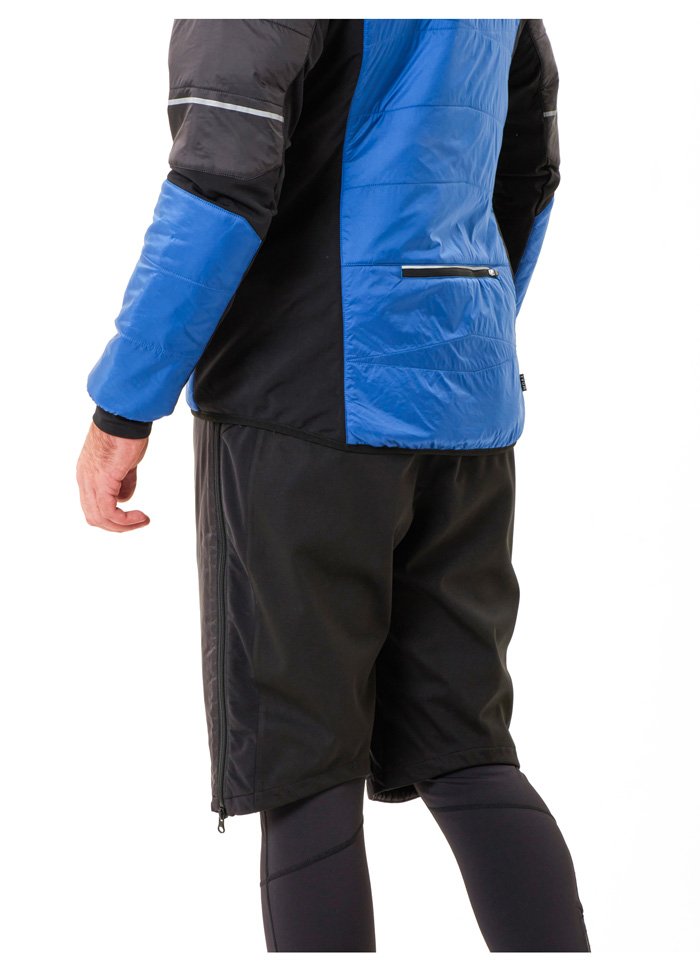 Передняя часть шорт выполнена из ветрозащитной стеганой ткани с утеплителем для защиты от холода, а задняя из эластичного трикотажа с дышащими и влагоотводящими свойствами. Пояс оснащен кнопками для надежной фиксации. Удобный карман на молнии подходит для хранения мелочей, обеспечивая безопасность и доступность необходимых вещей.
