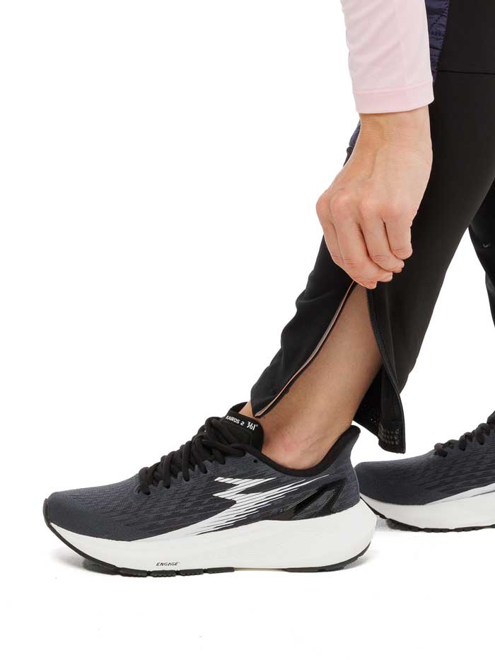 Боковые карманы на молнии позволяют безопасно хранить мелкие вещи. Классический пояс с фиксацией на кнопке обеспечивает удобную посадку. Внизу брючин расположены молнии, которые упрощают надевание и снятие брюк, а также позволяют регулировать посадку поверх обуви.