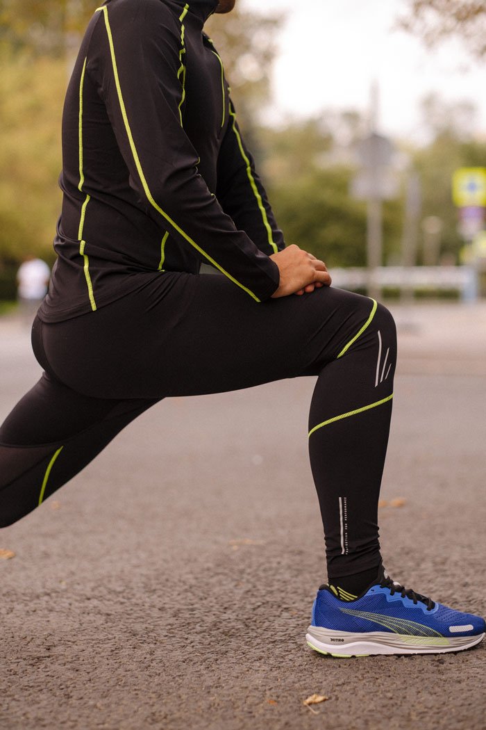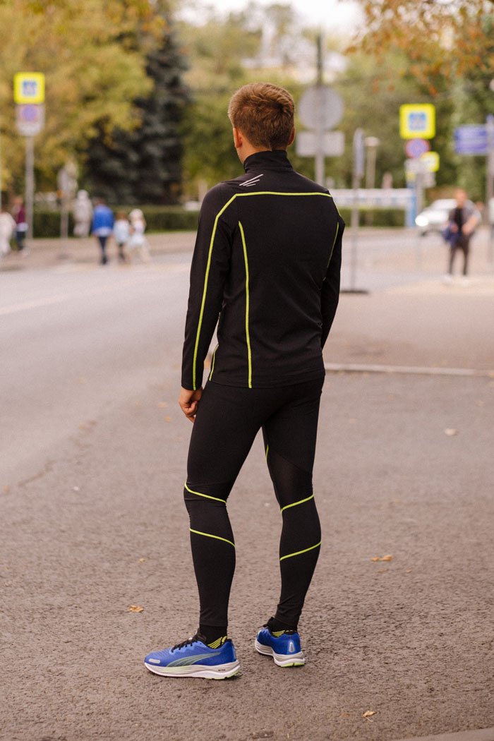 Плоские швы предотвращают натирание и дискомфорт. С задней стороны колен предусмотрены сетчатые вставки для охлаждения и вентиляции. Эластичный пояс со стороны спины оснащен небольшим карманом с бесшовным верхом, вырезанным лазером.
