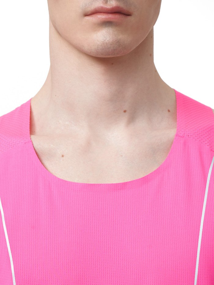 Майка Про 2.0 для высокоинтенсивных тренировок и соревнований. Она изготовлена из лёгкой ткани с влагоотводящей пропиткой QuickDry® для быстрого высыхания. Спина выполнена из легкой сетчатой ткани для дополнительной воздухопроницаемости. На рукавах и воротнике клееные швы, предотвращающие натирание. Спереди и сзади располагаются светоотражающие ленты, повышающие видимость в темное время суток.