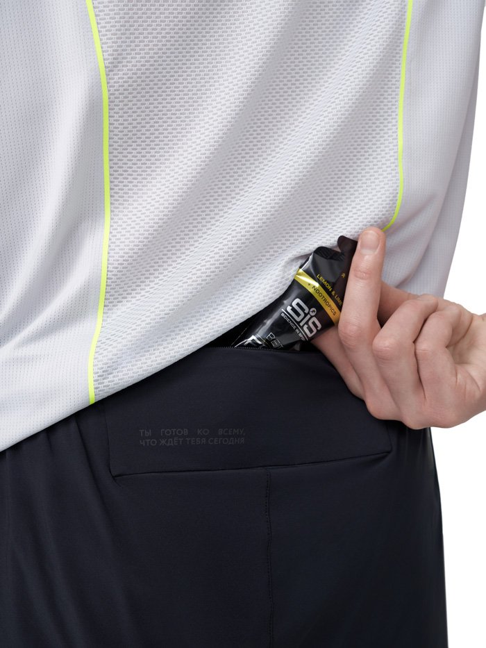 Шорты из серии Про, разработанной для соревнований и интенсивных тренировок в жаркую погоду. Модель изготовлена из легкой воздухопроницаемой ткани, вес которой составляет всего 90 г/м². Высокие разрезы по бокам обеспечивают максимальную свободу движений. Внутренние подтрусники превосходно дышат и отводят влагу. Перфорированный эластичный пояс оснащен шнурком для регулировки посадки. Сзади расположен карман на молнии для хранения телефона или важных мелочей.