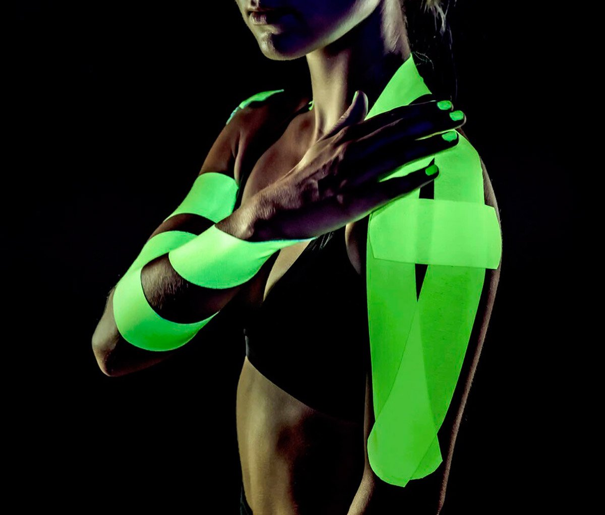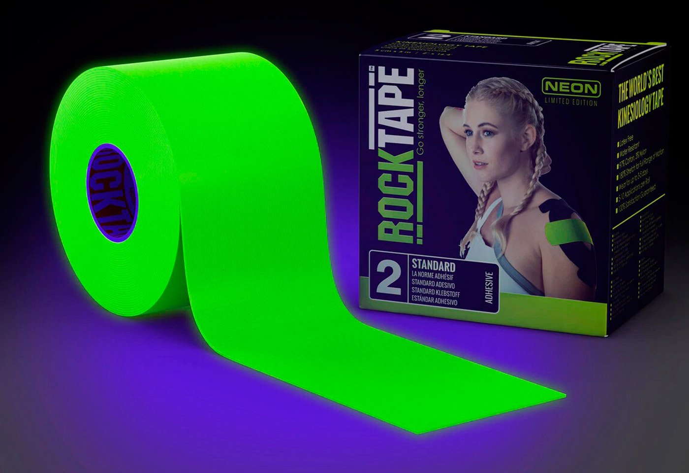 Кинезиотейп Neon светящийся в темноте, предназначен для профилактики и лечения травм. В месте аппликации пластырь улучшает кровоток и лимфодренаж, в результате сокращается время восстановления, задействуется быстрая регенерация тканей. Использование кинезиотейпа особенно эффективно при таких видах травм, как: ушибы, растяжения, гематомы, усталость и болевые ощущения в суставах и мышцах.