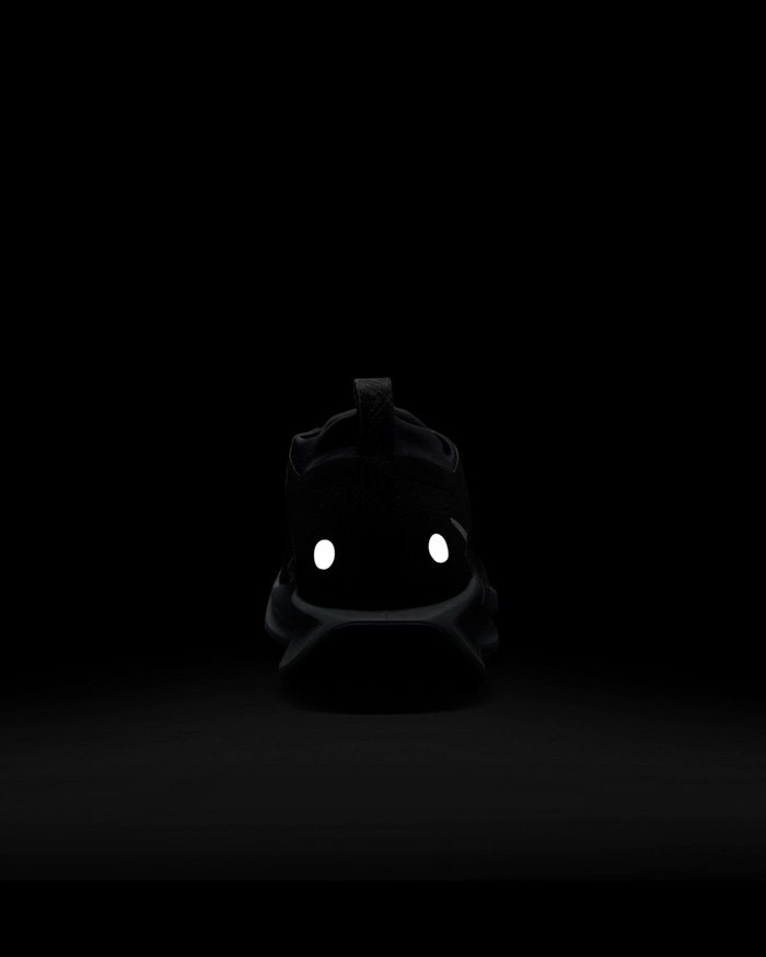 Прочный высокий манжет на щиколотке предотвращает попадание мусора и камней внутрь кроссовка, обеспечивая дополнительный комфорт при беге по пересеченной местности. Детали со светоотражающим дизайном повышают видимость в условиях низкой освещенности, повышая безопасность на тропе.