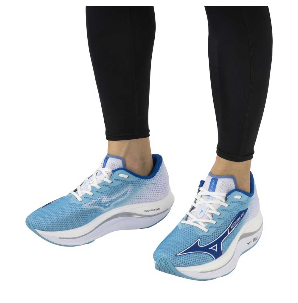 Лёгкая и мягкая пена Mizuno Enerzy Lite+ в верхнем слое межподошвы обеспечивает амортизацию и возврат энергии, а нижняя межподошва Mizuno Enerzy - скорость и высокую износостойкость. Enerzy Lite+ и Enerzy тесно взаимодействуют друг с другом, обеспечивая оптимальную амортизацию и упругость. Волнообразная пластина Mizuno Wave из пластика в сочетании со стекловолокном изнашивается медленнее, чем карбоновые пластины, что делает эту модель идеальной для тренировок. Пластина расположена полностью на передней части стопы, что