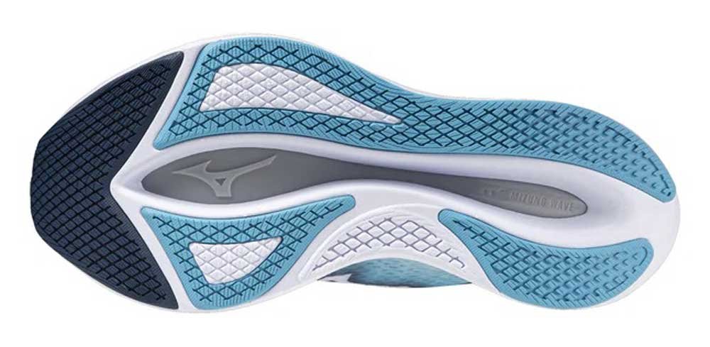 Лёгкая и мягкая пена Mizuno Enerzy Lite+ в верхнем слое межподошвы обеспечивает амортизацию и возврат энергии, а нижняя межподошва Mizuno Enerzy - скорость и высокую износостойкость. Enerzy Lite+ и Enerzy тесно взаимодействуют друг с другом, обеспечивая оптимальную амортизацию и упругость. Волнообразная пластина Mizuno Wave из пластика в сочетании со стекловолокном изнашивается медленнее, чем карбоновые пластины, что делает эту модель идеальной для тренировок. Пластина расположена полностью на передней части стопы, что обеспечивает мощный толчок и равномерное распределение ударной нагрузки.