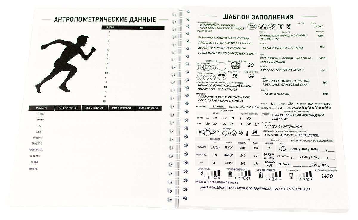 Артикул: RL0009Дневник помогает контролировать результаты тренировок и идти к лучшим достижениям. Он полезен и новичку и профессионалу.