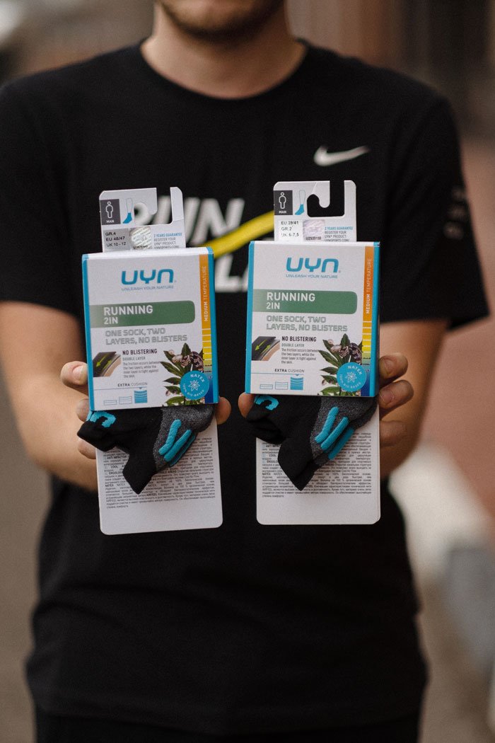 Носки имеют двухслойную структуру, что помогает уменьшить усталость и предотвратить натирание во время длительных пробежек. Двойное строение удерживает воздух между слоями, поддерживая постоянную температуру ног и обеспечивая комфорт.