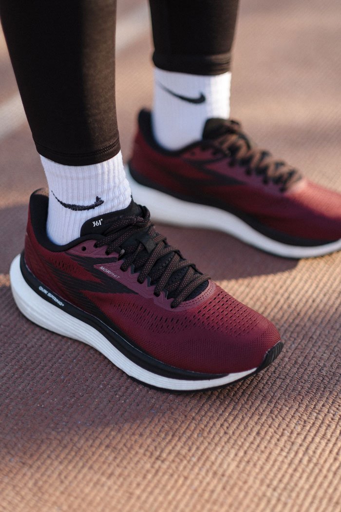Трикотажный вязанный верх обладает хорошей вентиляцией, его эластичная структура обеспечивает свободную посадку. Анатомический язычок Pressure Free Tongue смягчает давление шнуровки на верхнюю часть стопы. Надежная и удобная система шнуровки MORPHIT обеспечивает идеальную фиксацию стопы при беге.