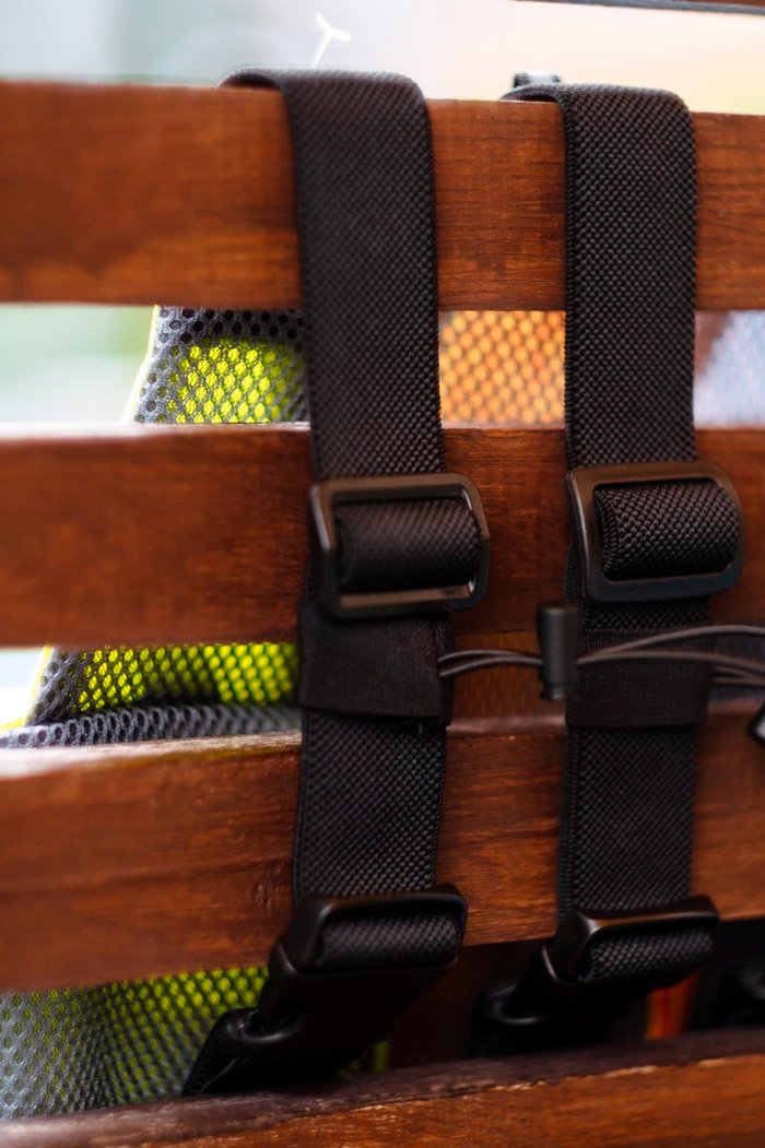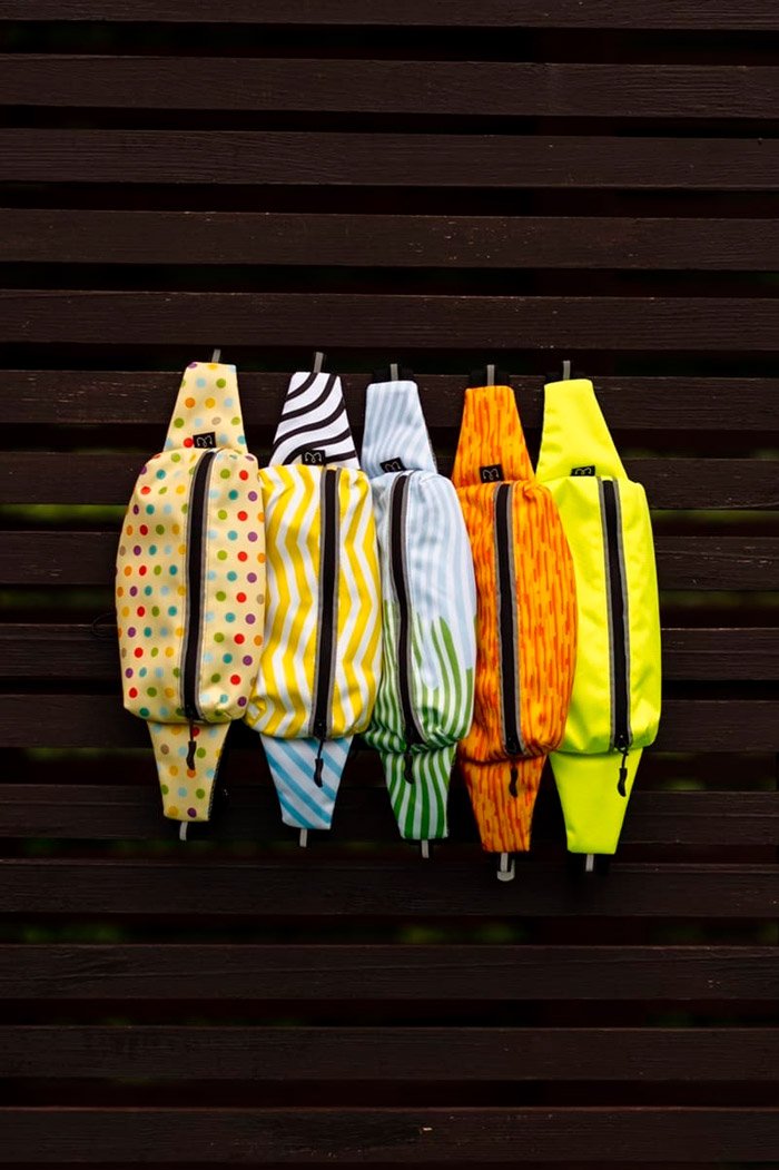 Сумка имеет объемное строение, вдоль молнии располагаются светоотражающие полосы. Снаружи сумки прочная ткань, со стороны тела мягкая, но износоустойчивая сетка для вентиляции. Ремень изготовлен из широкой эластичной ленты. Объем ремня регулируется.