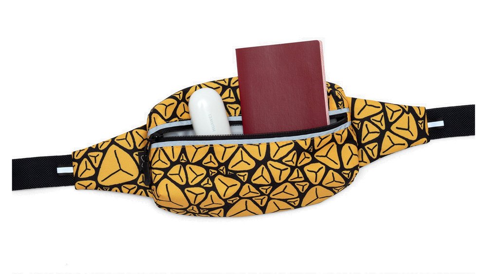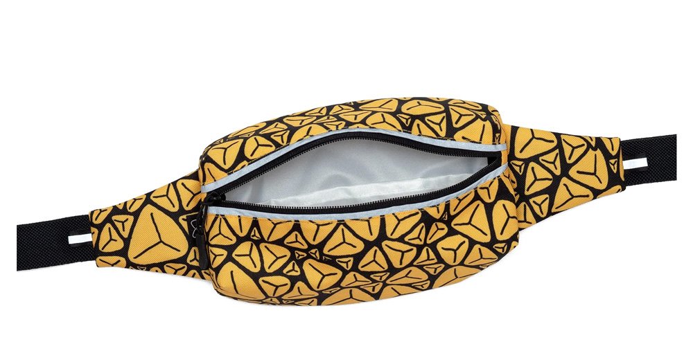 Сумка имеет объемное строение, вдоль молнии располагаются светоотражающие полосы. Снаружи сумки прочная ткань, со стороны тела мягкая, но износоустойчивая сетка для вентиляции. Ремень изготовлен из широкой эластичной ленты. Объем ремня регулируется.