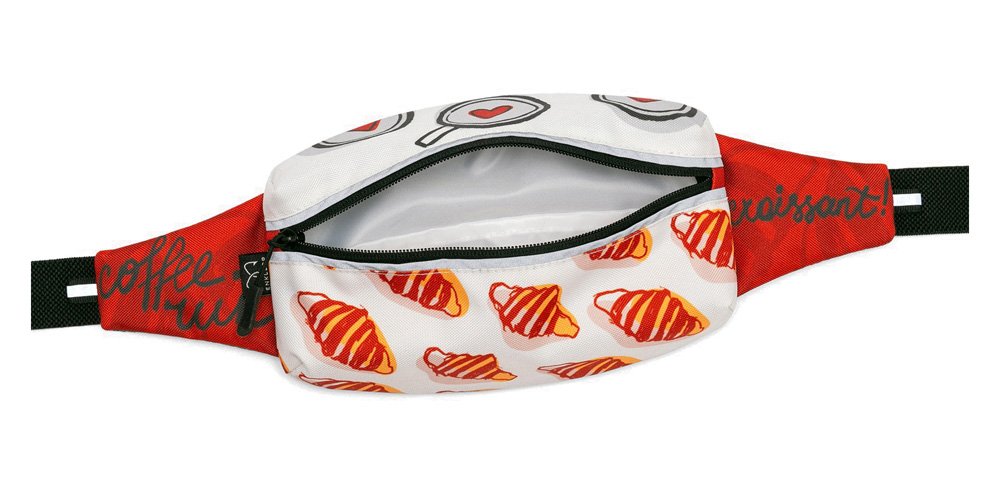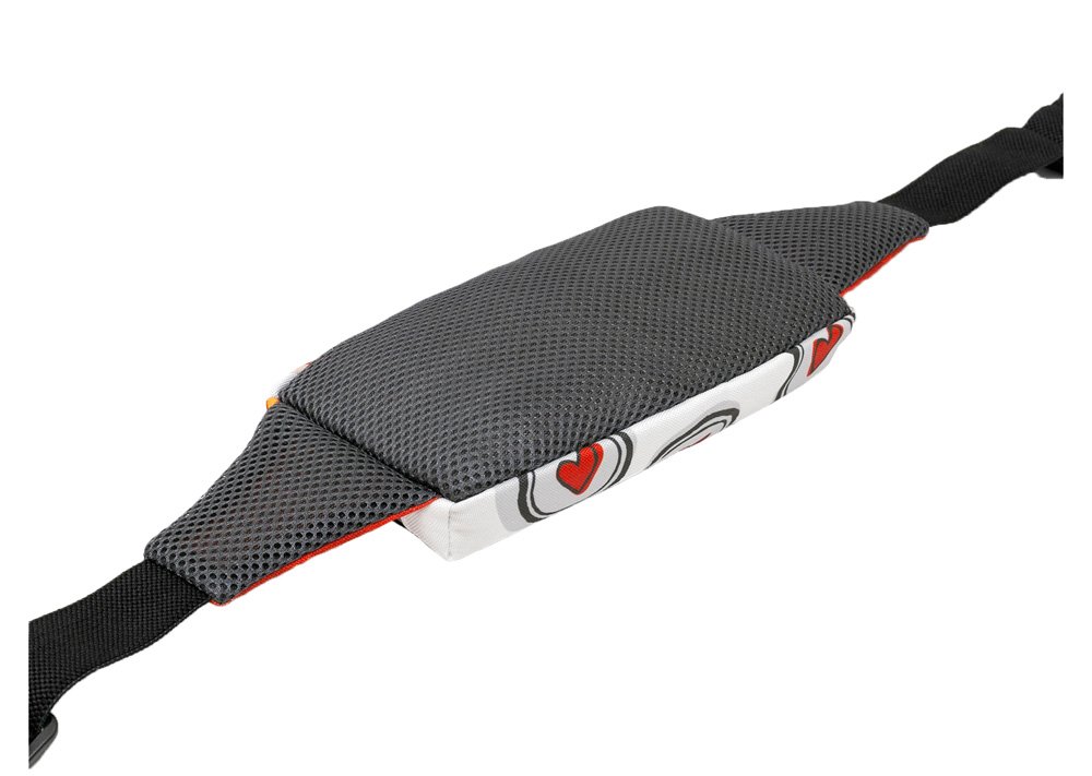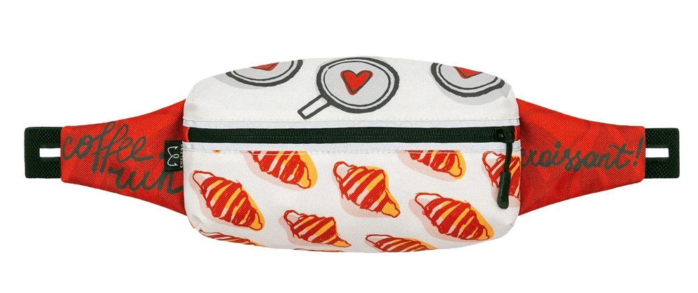 Сумка имеет объемное строение, вдоль молнии располагаются светоотражающие полосы. Снаружи сумки прочная ткань, со стороны тела мягкая, но износоустойчивая сетка для вентиляции. Ремень изготовлен из широкой эластичной ленты. Объем ремня регулируется.