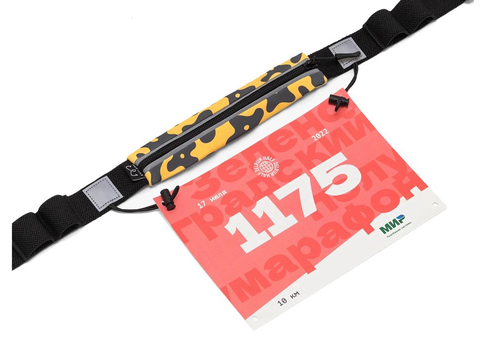Сумка на пояс с креплением для номера и отделениями для гелей. Удобный аксессуар, который подходит для соревнований, беговых тренировок и других видов активности.
