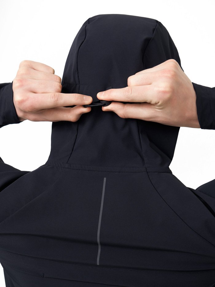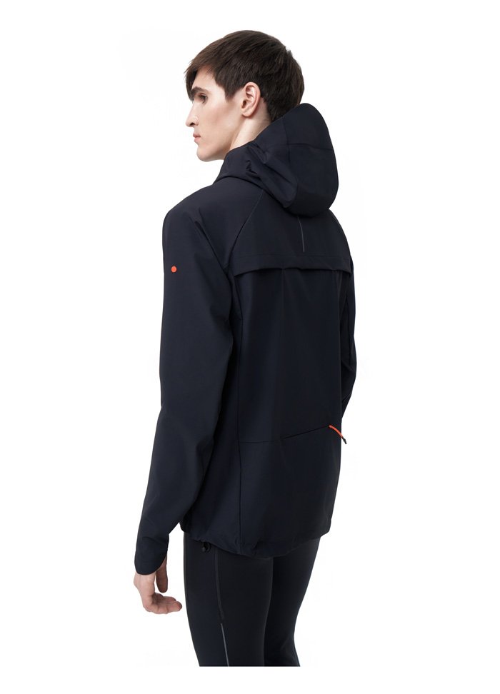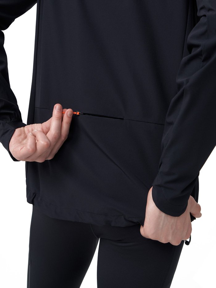 Для вентиляции и охлаждения на спине предусмотрен сквозной клапан. Удобные пуллеры на всех молниях делают процесс застегивания более комфортным и легким. В боковых карманах с дополнительными сетчатыми кармашками внутри можно хранить необходимые на пробежке мелочи. Низ куртки регулируется кулиской для идеальной посадки и защиты от ветра.