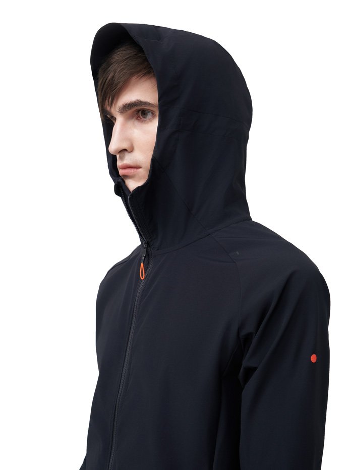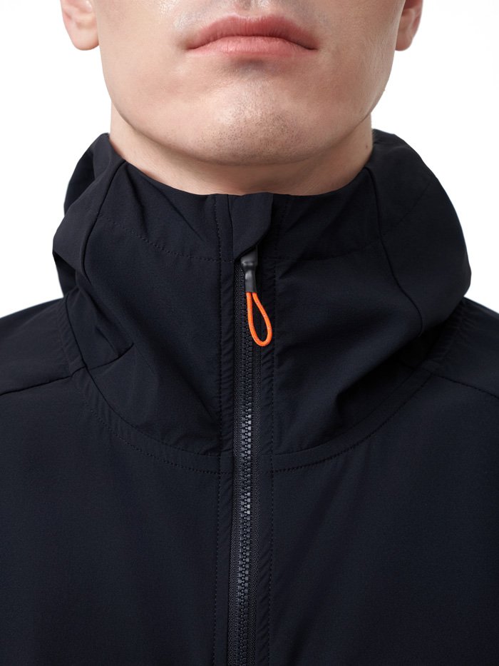 Ветроустойчивая ткань с водоотталкивающей DWR-пропиткой защищает от ветра и небольших осадков или сильного дождя в течение 10-15 минут. DWR-пропитка образует защитный слой на поверхности ткани, благодаря которому вода не впитывается, а скатывается с поверхности в виде капель. Регулируемый капюшон дополнительно защищает от непогоды.