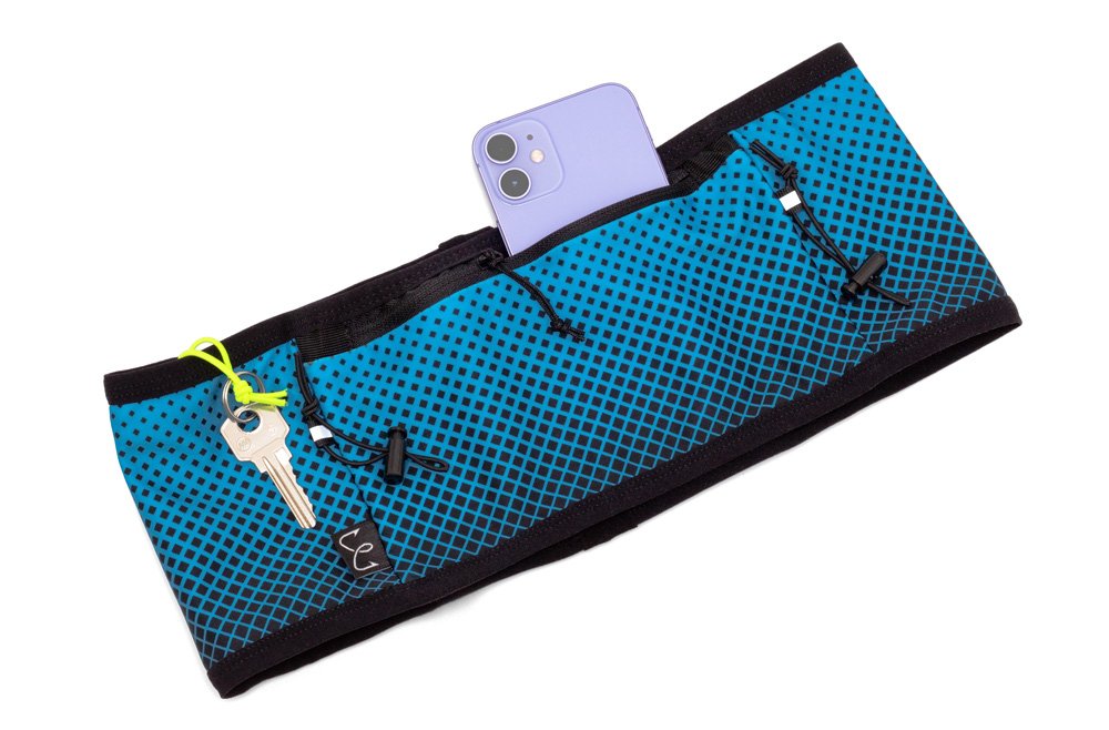 Удобный пояс с карманами для бега по пересеченной местности. Передний карман на молнии предназначен для хранения телефона. По окружности располагаются открытые карманы разного размера для удобного размещения необходимых мелочей. Спереди предусмотрены две съемные петли для крепления номера, а в боковых карманах - петли для ключей. Сзади располагаются две широкие резинки с противоскользящим плетением, предназначенные для хранения треккинговых палок или беговых аксессуаров.