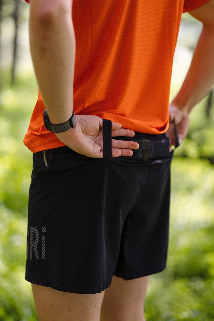 Удобные трейловые шорты для бега по пересеченной местности и соревнований по трейлраннингу и скайраннингу. Отличительной особенностью данной модели является большое количество карманов вокруг пояса и специальное крепление для треккинговых палок. Прочная нейлоновая ткань устойчива к износу и зацепкам, а наличие светоотражающих деталей повышает безопасность в темное время суток.