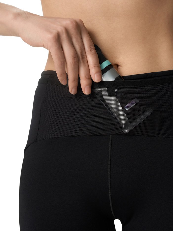 Тайтсы для пробежек и соревнований по пересечённой местности при температуре от 0 до +15°С. Карманы этих лосин похожи на поясную сумку: в них поместится фляга, гели и другие необходимые мелочи. Сзади на поясе есть крепление для треккинговых палок. В задний карман на молнии можно положить телефон. Модель разработана специально для трейлраннеров.