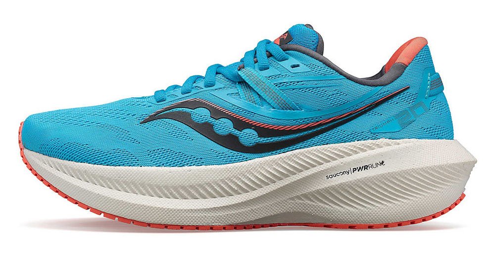 В новой версии Triumph 20 высота общего слоя межподошвы увеличилась на несколько миллиметров, перепад между пяткой и носком стал составлять 10 мм вместо 9, при этом вес кроссовок сократился на 15 грамм. Легкая и сверхмягкая пена PWRRUN+ обеспечивает эффективную амортизацию и комфорт во время длительных пробежек. Прочная резиновая подошва обладает отличным сцеплением на д