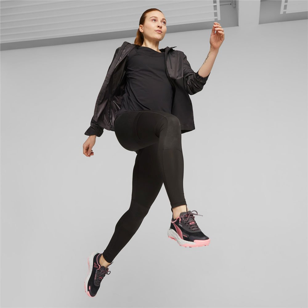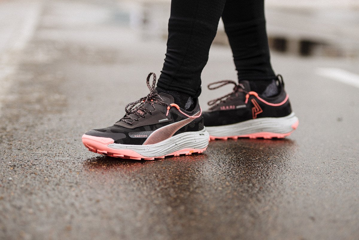 Резиновая подошва PumaGrip ATR с выступами PWRAdapt отвечает за надежное сцепление на таких сложных поверхностях как лед, грязь, влажный и рыхлый грунт. Боковые расширения в средней части стопы поддерживают лодыжки во время бега. В передней части стопы располагаются дренажные отверстия для отвода воды при беге по лужам.