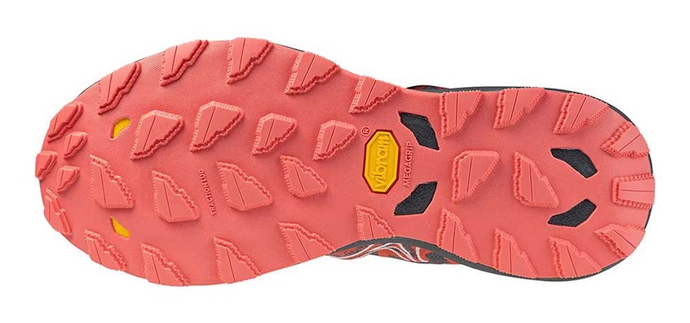 Верх изготовлен из прочного эластичного материала, который надежно облегает ногу, обеспечивая превосходный комфорт и устойчивость на бездорожье. Подошва Vibram Megagrip обладает высоким сцеплением с мокрыми и скользкими поверхностями и отличается прочностью и устойчивостью к износу.